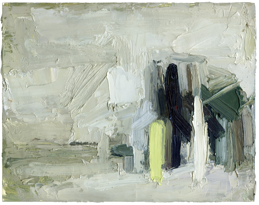 "Bucci McCoy's small paintings hinge on the materiality of the paint, how it flows, how it dries, and how her spontaneous actions impinge upon it. Color matters, but the works are catalyzed by substance." — Cate McQuaid, in "Arts: The Week Ahead," g Style, The Boston Globe, Thursday, April 3, 2014
