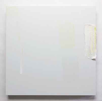 Mary Bucci McCoy employs an alchemist’s intrigue to her painting process that is influenced by her background in ceramics. As in the firing of ceramic glazes, the element of chance plays a role here as she often combines fluid acrylic and iridescent acrylic paints to achieve her alchemy. One can feel time passing in Bucci McCoy’s spare, elegant paintings that are graced by intermittent color, large areas of white and distinctive mark-making."