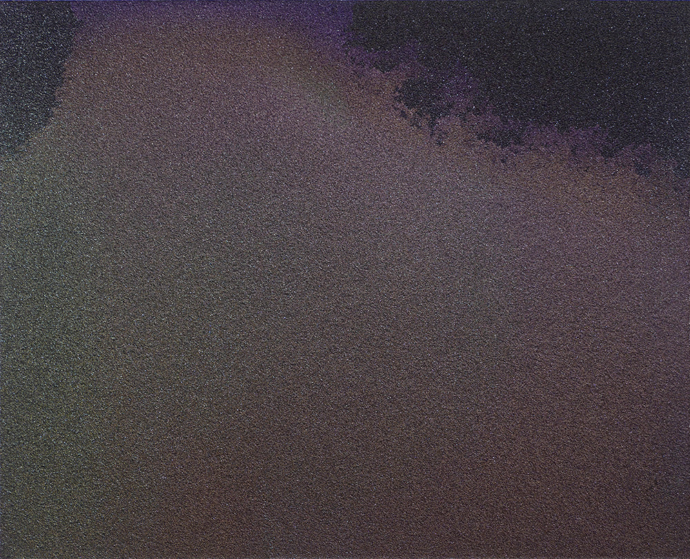 The Transmission Series of works on paper takes a ground of geological aggregate — silicon carbide — as a starting point for layered mark-making through the force of water, pull of gravity and accretion of washes of acrylic paint and specular hematite, also known as micaceous iron oxide.